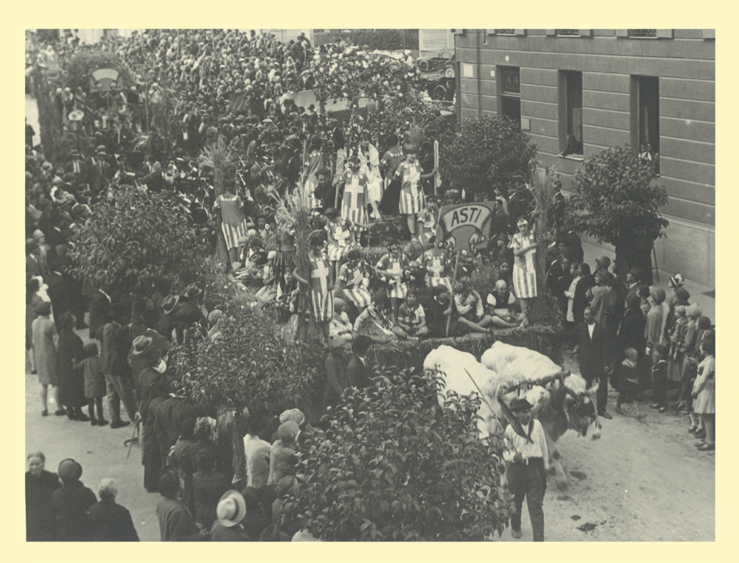 Tant’è che a partire dal 1930 verrà istituita da Roma la “Festa dell’uva”, una festa nazionale più strutturata in varie sedi che, anche ad Asti, si sostituirà all’esperienza delle “Vendemmiali 1927”. In quegli anni arrivò pure la prima legge a tutela dei vini tipici e si favorì la nascita dei Consorzi in chiave corporativa. Quelli dell’Asti spumante e del Moscato d’Asti furono tra i primi nel 1932 (vedi Astigiani 2, dicembre 2012). Ma qui interessa sottolineare che già nel 1927 Asti giocò d’anticipo rispetto ad altri comuni e territori e si mosse sulla valorizzazione della coltura della vite e la cultura del vino, tema che è rimasto a ispirazione del Settembre astigiano.