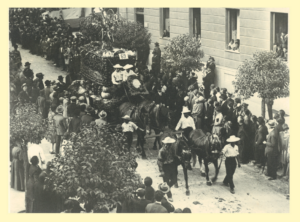 Dopo i fasti della fine dell’Ottocento con le grandi esposizioni enologiche del 1891 e del 1898 (vedi Astigiani 25, settembre 2018), c’erano state la Grande Guerra e la terribile epidemia di fillossera che aveva devastato le vigne. C’era bisogno di un rilancio anche promozionale e, dopo la prima Mostra campionaria dei vini piemontesi promossa ad Asti nel 1924, si arriva appunto al 1927. È in questo contesto che in Asti hanno origine le “Feste Vendemmiali”.