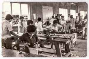 conta 75 allievi, tutti giovanotti sui 14- 18 anni, che in un triennio si preparano a una professione sicura. Ne è a capo il salesiano coadiutore Carlo Gamba: sta formando dei professionisti molto apprezzati. Non solo, ma si occupa anche di vocazioni (due suoi giovani si preparano a entrare in noviziato), e trova tempo per la scultura rifacendo statue, altari e tabernacoli che la guerra ha distrutto.
