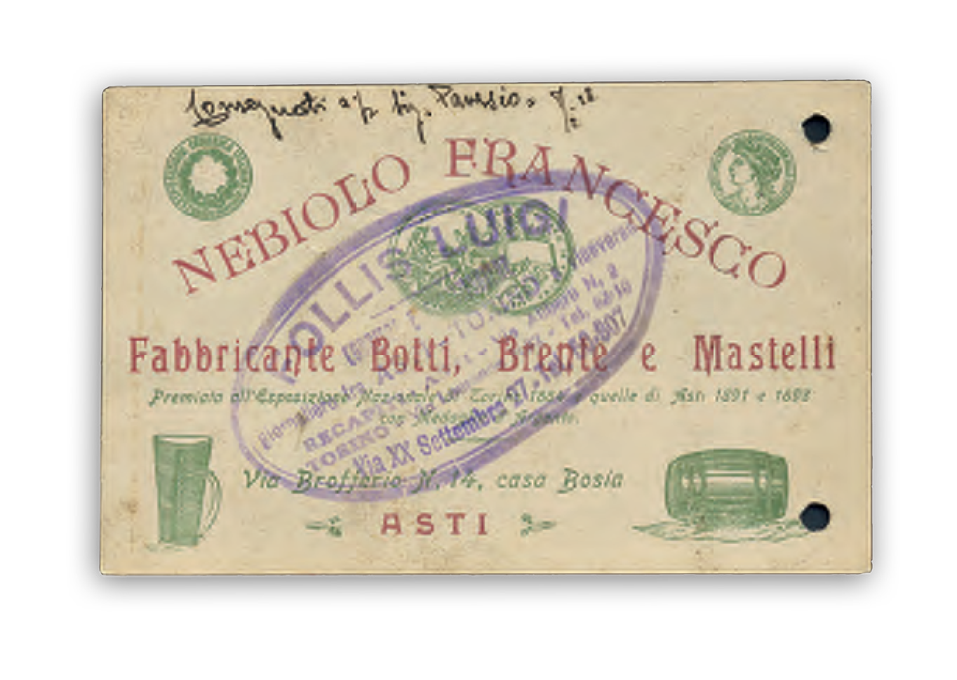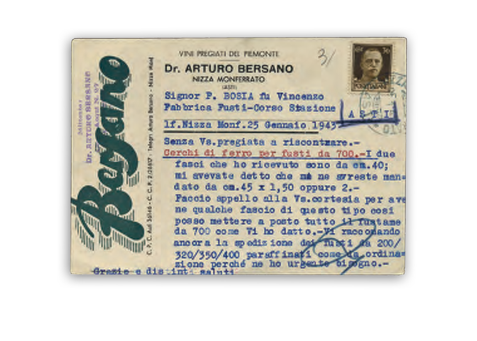 Grazie alla collaborazione con Astigiani abbiamo deciso di prendere qui in considerazione uno degli aspetti che sono parte fondamentale di questa città, rivisto attraverso una piccola raccolta dalla collezione di Bruno: i produttori che coi loro vini popolavano tra la fine dell’Ottocento e la prima metà del Novecento il centro e i paesi limitrofi, le loro cartoline postali, promozionali e i prezzari. Una piccola selezione che racconta storie di lavoro e passione da non dimenticare.