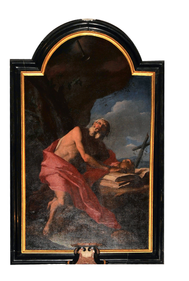 Ad adornare il manufatto fu posizionata, entro il 1711, una straordinaria pala a olio su tela, raffigurante San Gerolamo in estasi, dell’importante artista ticinese Giuseppe Antonio Petrini (1677-1755 c.). Intanto, nel biennio 1704-1705, all’ingresso della chiesa, fu realizzata la tribuna in muratura, opera dei capomastri Antonino e Francesco Maria Gatto, abbellita da candidi stucchi del luganese Antonio Bellotto e decorata dalla pittrice costigliolese Caterina Arellano Borio (1664-1725), figlia del pittore Secondo.