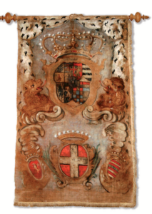 Tra le curiosità esposte anche lo stendardo del Palio di Asti che la confraternita “rivale” della Misericordia vinse in una rocambolesca corsa