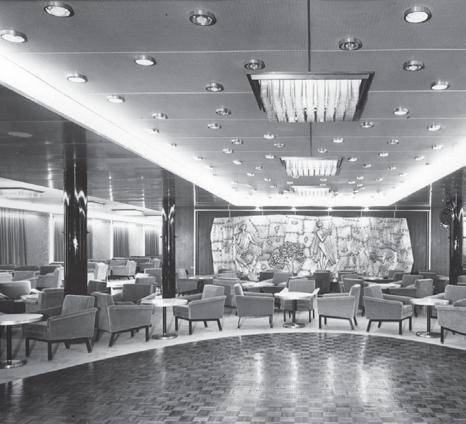 L’ultimo arazzo viene completato nella notte che precede il primo viaggio della nave. Il 30 giugno 1960 Scassa e le tessitrici partono all’alba alla volta di Genova e lo consegnano con le proprie mani al comandante della Leonardo da Vinci. Sono esauste, ma al settimo cielo.