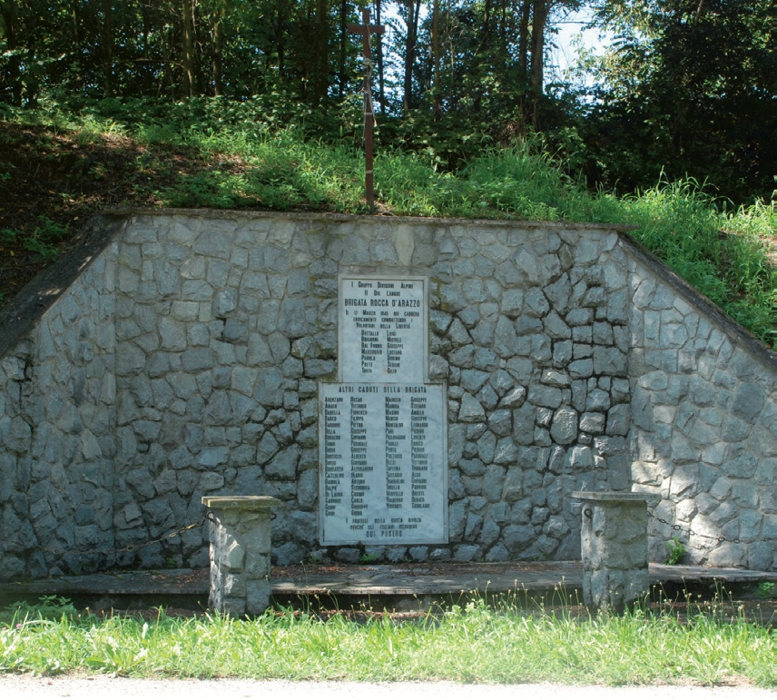 Lungo la strada da Quarto a Castello d’Annone la lapide che ricorda la strage del 17 marzo 1945 e quella con i nomi di altri 37 caduti della Brigata autonoma di Rocca d’Arazzo