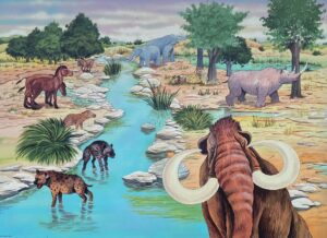 zona due milioni di anni fa tornava asciutta dopo essere stata a lungo il fondale di un mare tropicale, dove nuotavano balene e delfini. Ben prima dell’uomo, sulle nuove terre coperte di praterie e boschi si aggiravano mammut, rinoceronti e predatori.