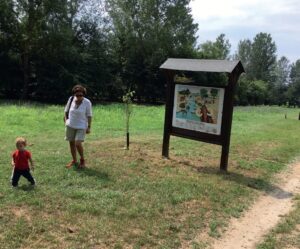 Al parco delle Rocche di Antignano, tutto ciò che oggi si trova di artificiale è una serie di pannelli didattici – su cui torneremo in seguito – e un piccolo capanno di servizio in legno. Ma non è certo una zona selvaggia. La piantumazione regolare e la cura riservata alla vegetazione ne fanno un’area verde più che un parco naturale. Al contrario, per certi versi qui è celebrata la vocazione agricola della valle del Tanaro.